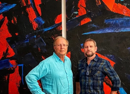 Założyciel luksusowej sieci hoteli Six Sences Wolf Hengst z żoną, Dorota Hajdarowicz i Grzegorz Hajdarowicz z wizytą w pracowni. Interesujące i inspirujące rozmowy o sztuce i najnowszym cyklu malarskim.