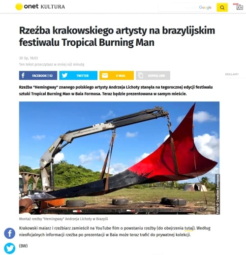 ONET.PL o rzeźbie "Hemingway" i video z Festiwalu TrobpcalBurn