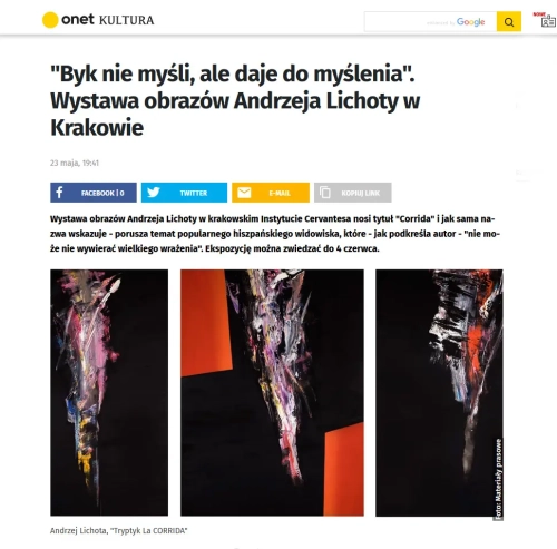 28-go kwietnia 2022 r. odbył się wernisaż najnowszego cyklu obrazów i rzeźb Andrzej Lichoty który został poświęcony hiszpańskiej Corridzie. Artysta realizował cykl od 2017 roku. Cykl zawiera ponad 50 prac w tym 5 wielkich tryptyków i niemal 7 metrową rzeźbę Hemingway która obecnie znajduje się w Brazylii.