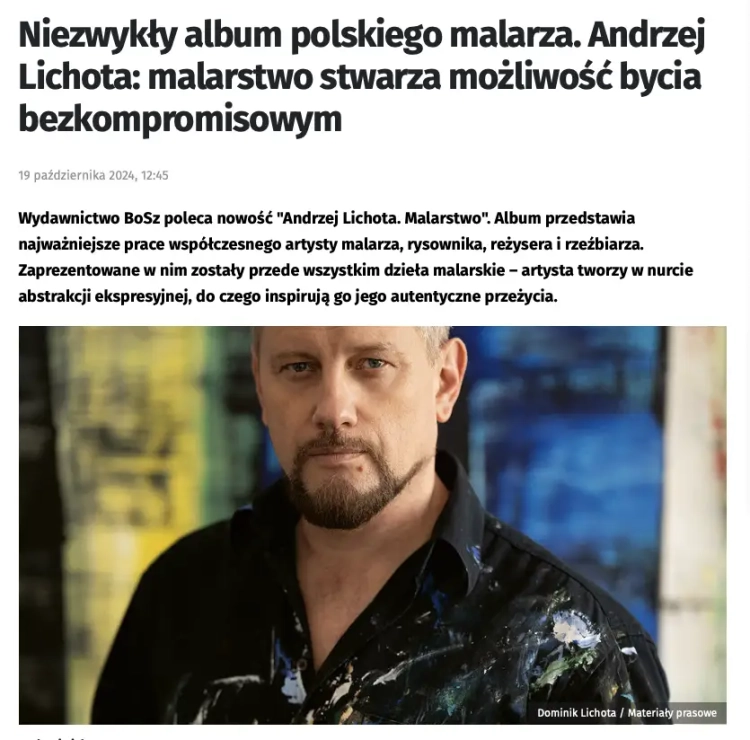 26 października 2024 roku podczas 27 Międzynarodowych Targów Książki w Krakowie odbyło się spotkanie z Andrzejem Lichotą, który na stoisku Wydawnictwa BoSz podpisywał swój najnowszy album. Artysta spotkał się z czytelnikami i miłośnikami swojej twórczości, dzieląc się inspiracjami oraz refleksjami na temat swoich prac. Wydarzenie cieszyło się dużym zainteresowaniem i było wyjątkową okazją do rozmowy z autorem oraz uzyskania jego autografu.